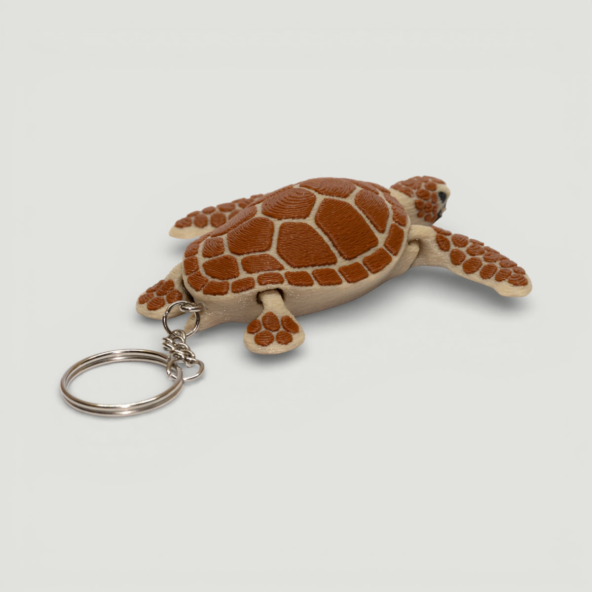 3D baskı teknolojisiyle üretilmiştir. Kabuk üzerindeki doku ve katmanlar özellikle korunmuştur; bu sayede kaplumbağanın doğal formu daha güçlü hissedilir. Hafif yapısı sayesinde anahtarlıkta veya çantada taşımaya uygundur.