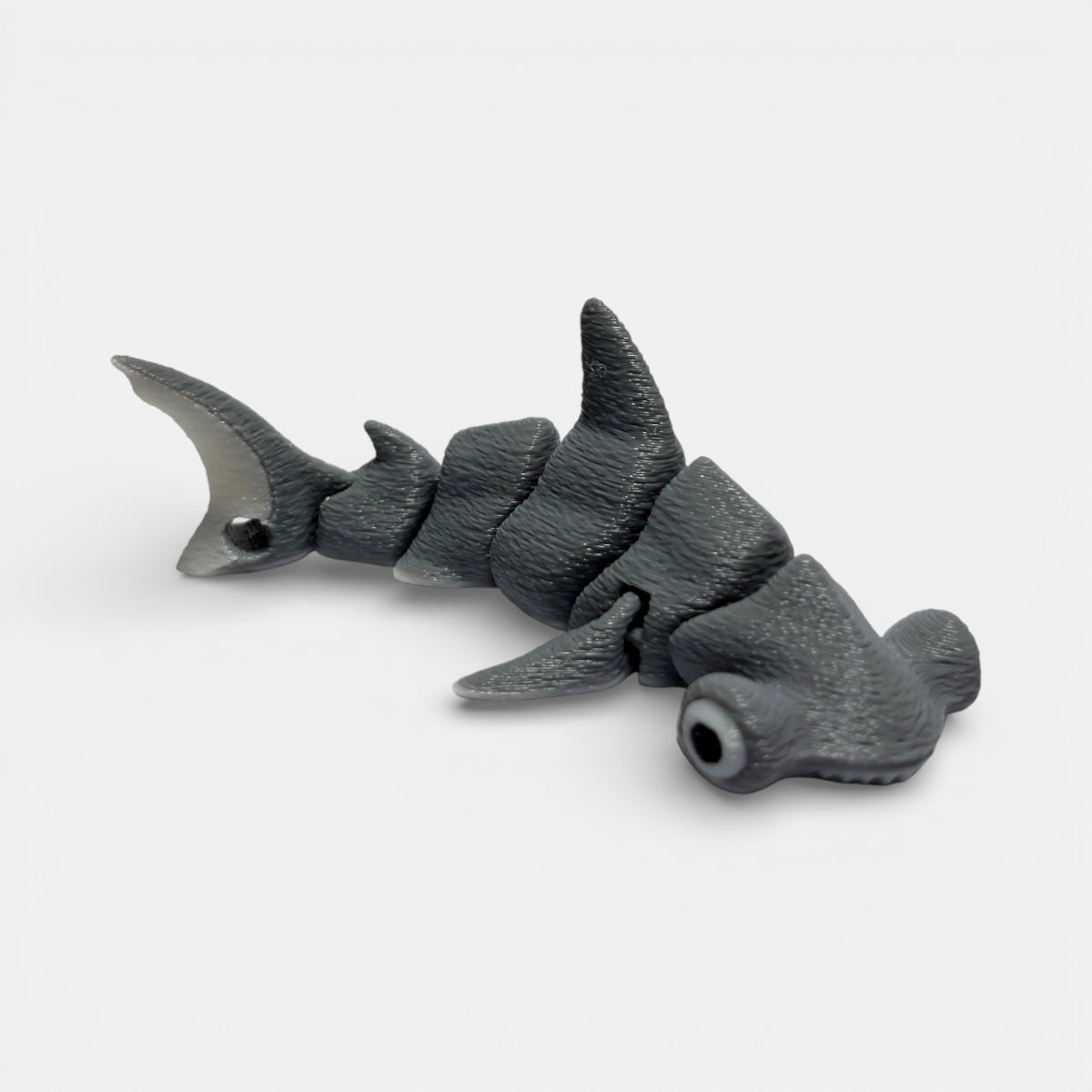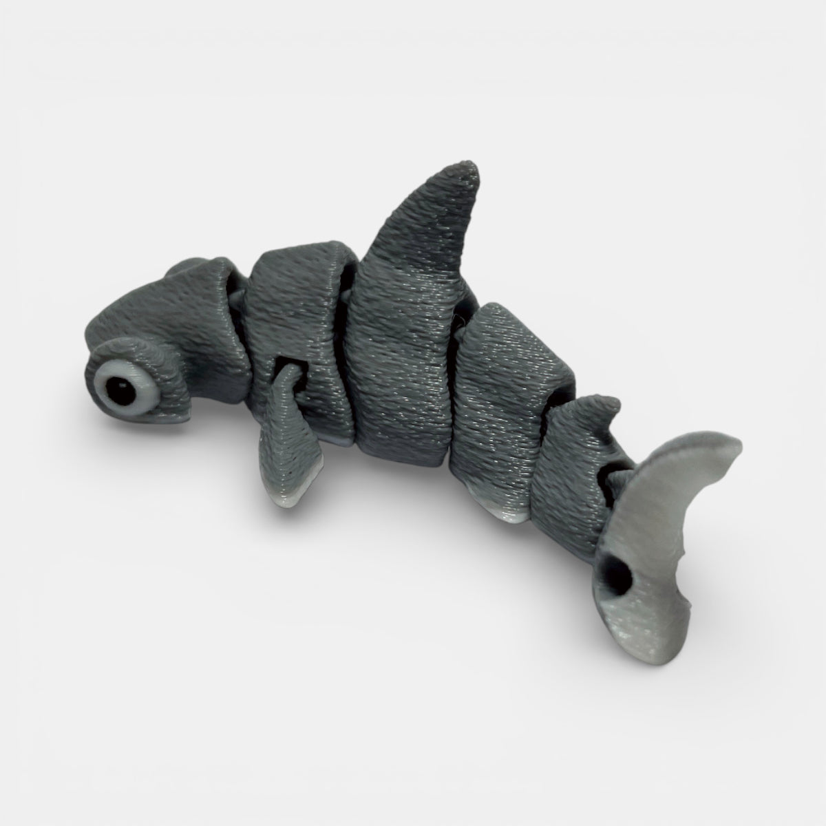 Bu köpekbalığı anahtarlık, çok parçalı eklemli yapısı sayesinde elde oynadıkça kıvrılan, poz değiştiren ve canlı bir hareket hissi veren özgün bir tasarımdır. Gövde segmentlere ayrılmıştır; baştan kuyruğa kadar akıcı bir hareket sunar.