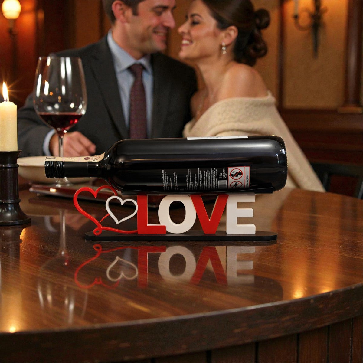 LOVE Şarap Şişesi Standı – Dekoratif Masa Süsü